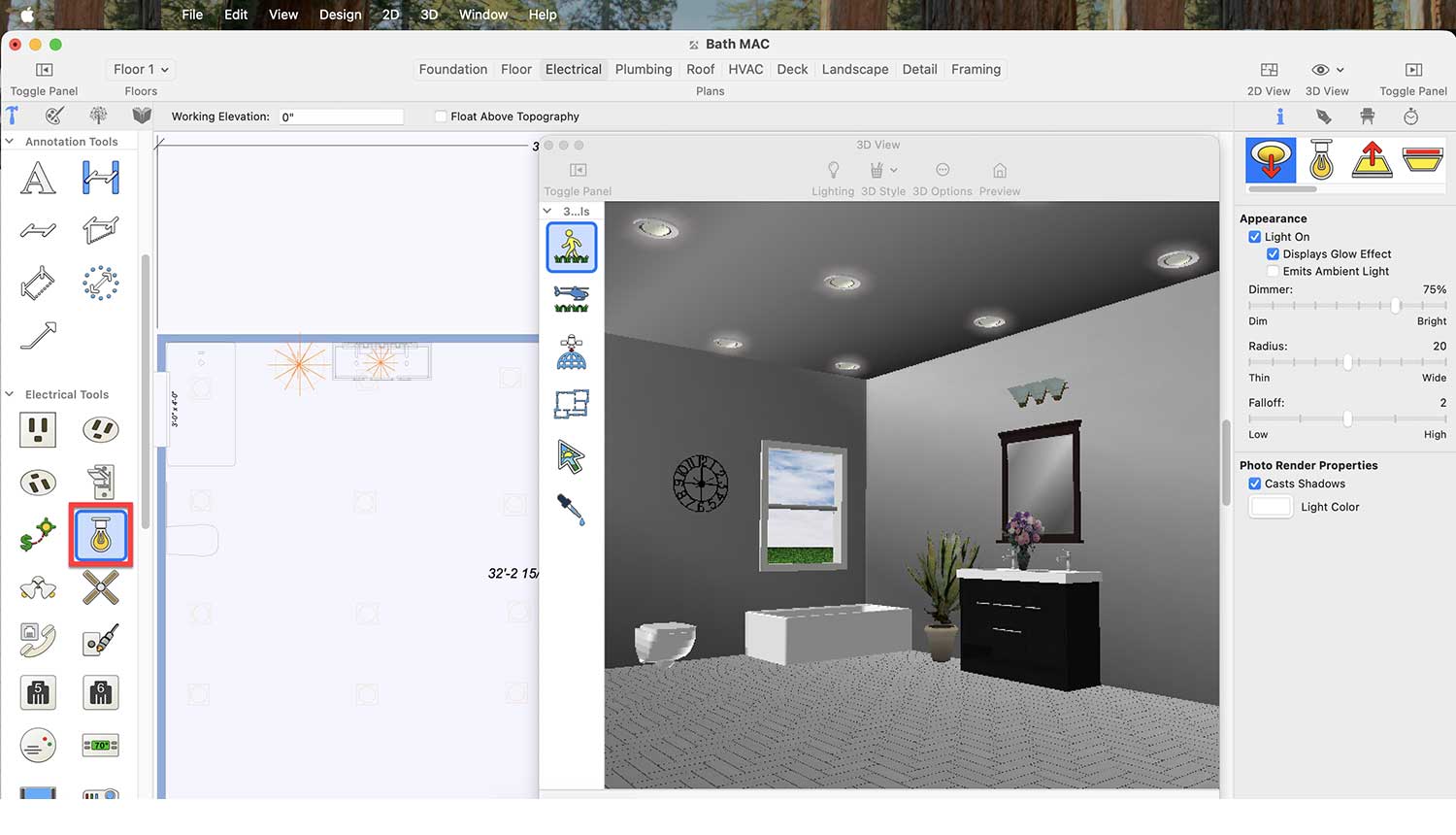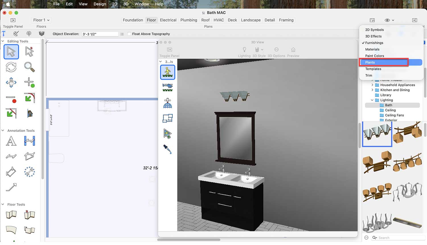 Now it’s time to enhance our bathroom space and make it more attractive and visually appealing by thoughtfully incorporating essential fittings, lighting, and accessories. To do this, we will use the default libraries.