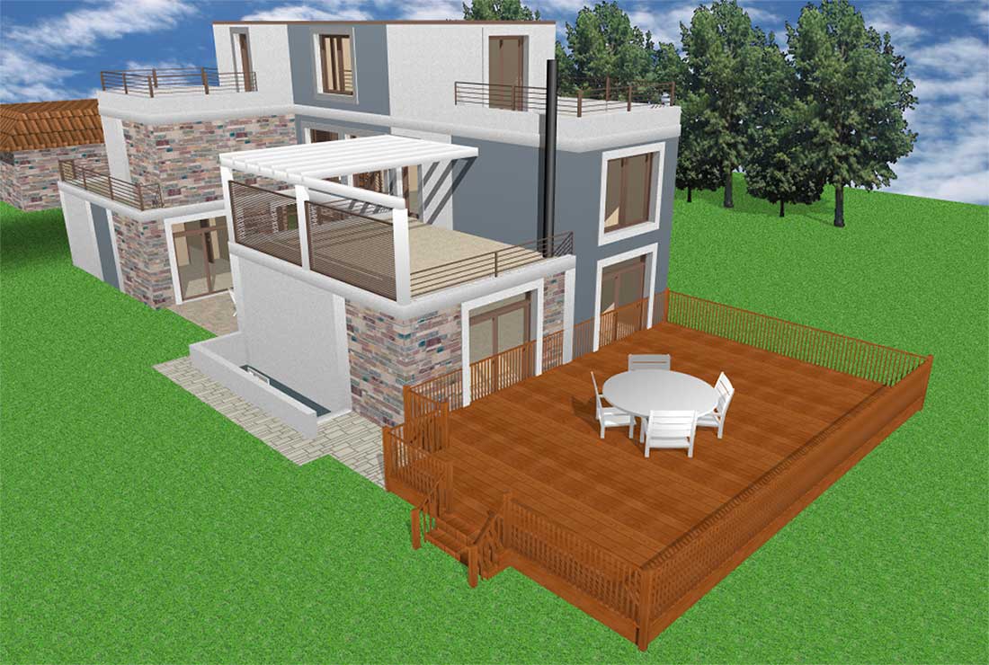 Rendering result: A stylish, functional deck that blends seamlessly with your home.