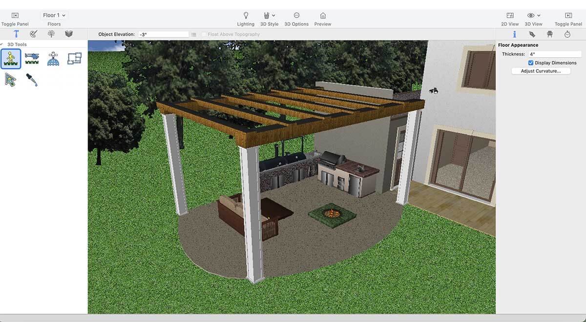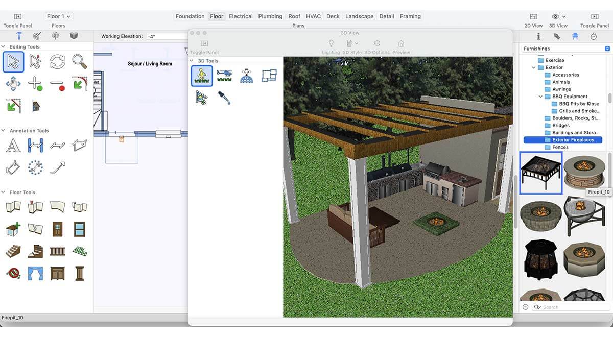 Similarly, the application includes a wide selection of exterior fireplaces that can elevate the atmosphere of your outdoor kitchen, making the space warmer, more inviting, and visually appealing.
