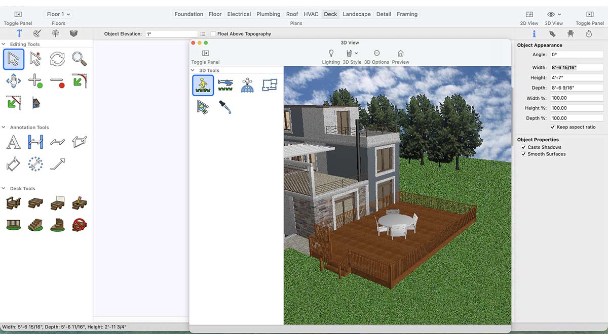 Select the Deck Tool and place the deck in your desired area.