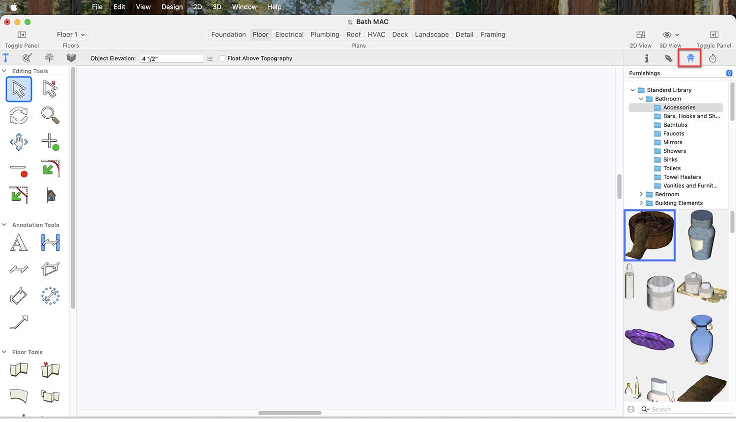 Now it’s time to enhance our bathroom space and make it more attractive and visually appealing by thoughtfully incorporating essential fittings, lighting, and accessories. To do this, we will use the default libraries.