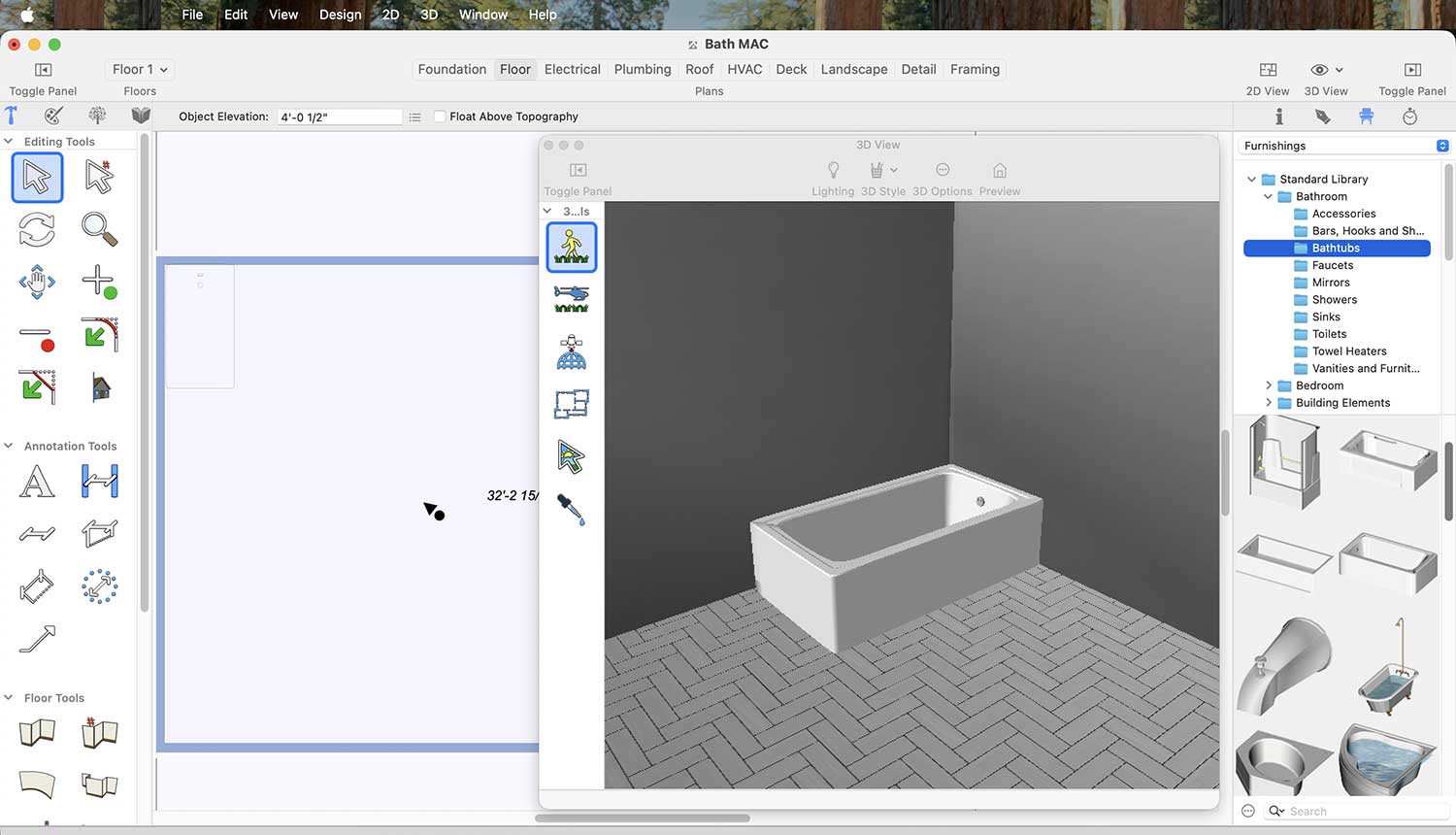In the Content section, you will find a wide variety of bathtubs for your bathroom. You can choose any one of them based on your bathroom’s design and layout. Bathtubs can be found under Standard Library > Bathroom > Bathtubs.