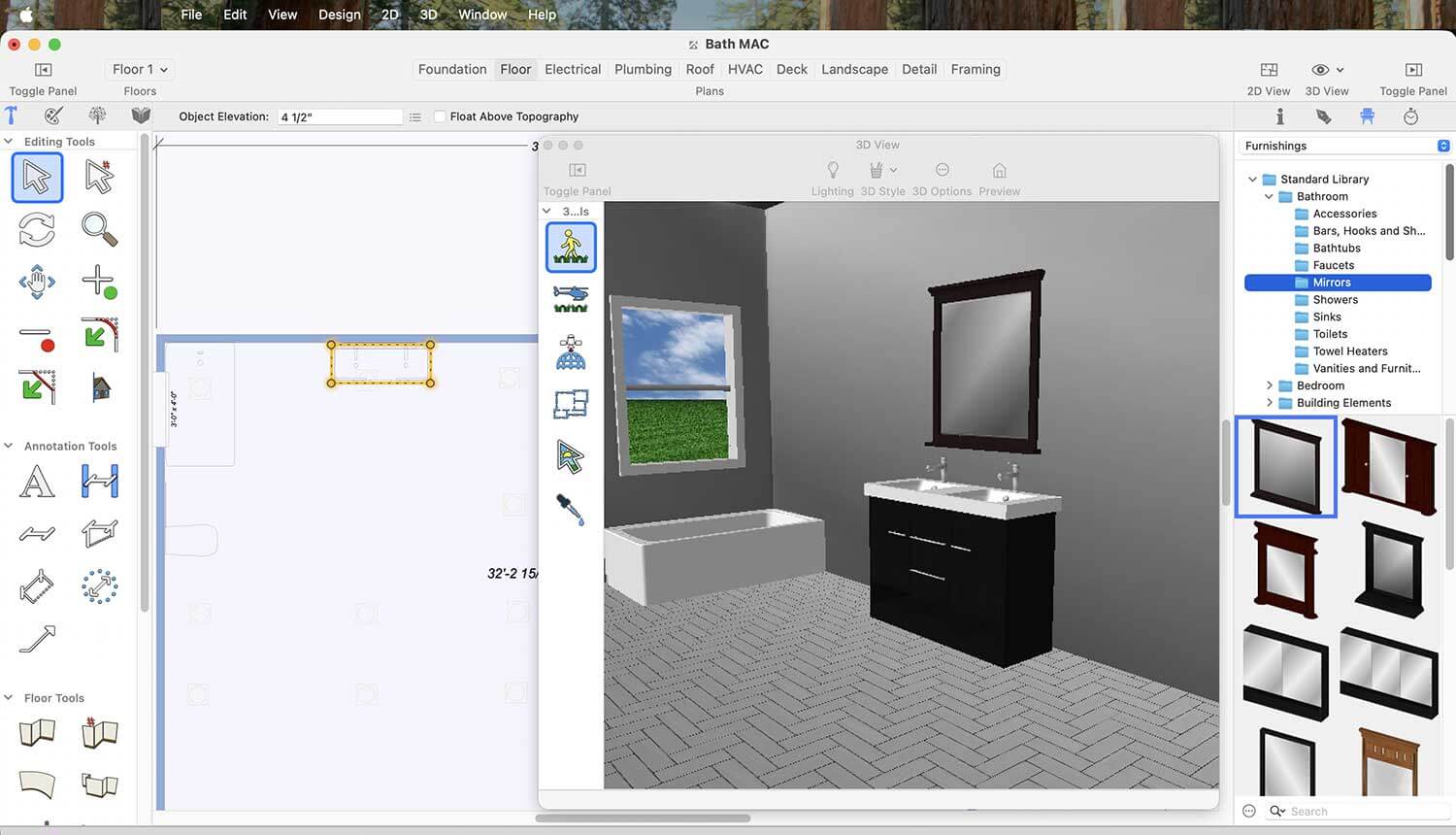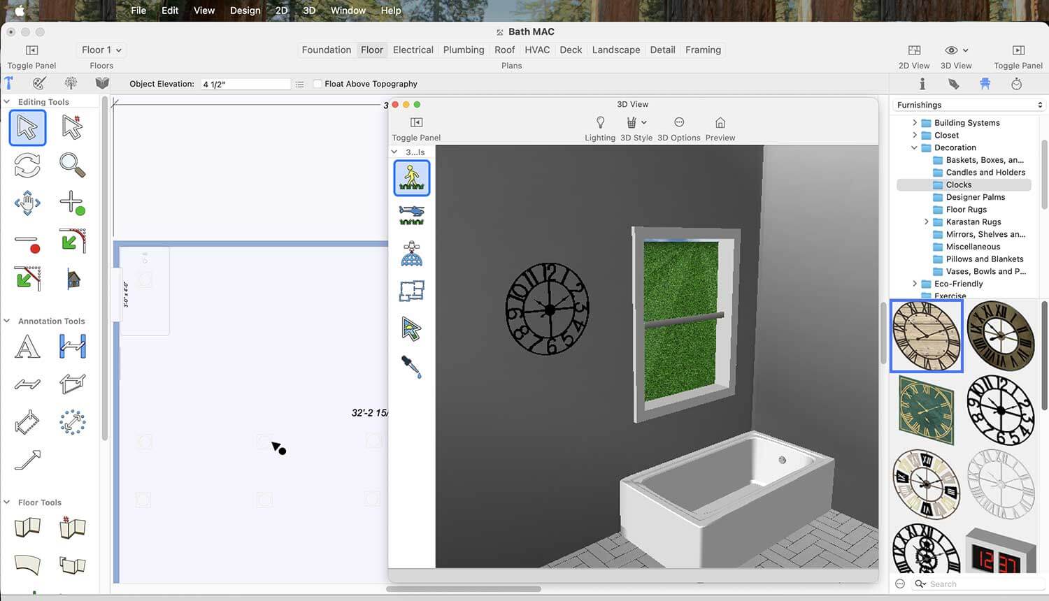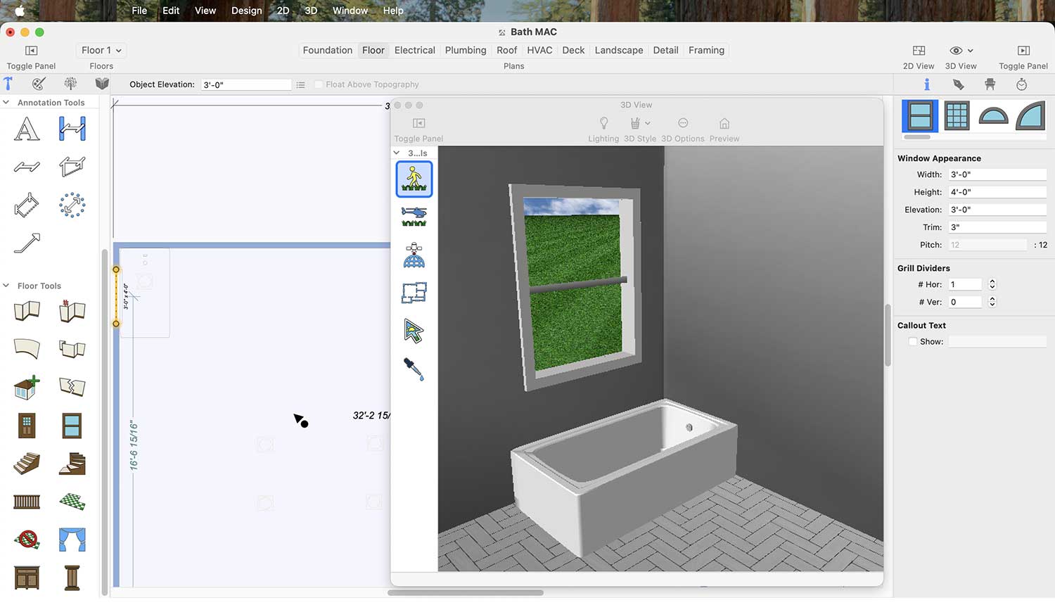 If you want to place a window in your bathroom, click on the Window icon, then simply click on the wall where you want to place the window.