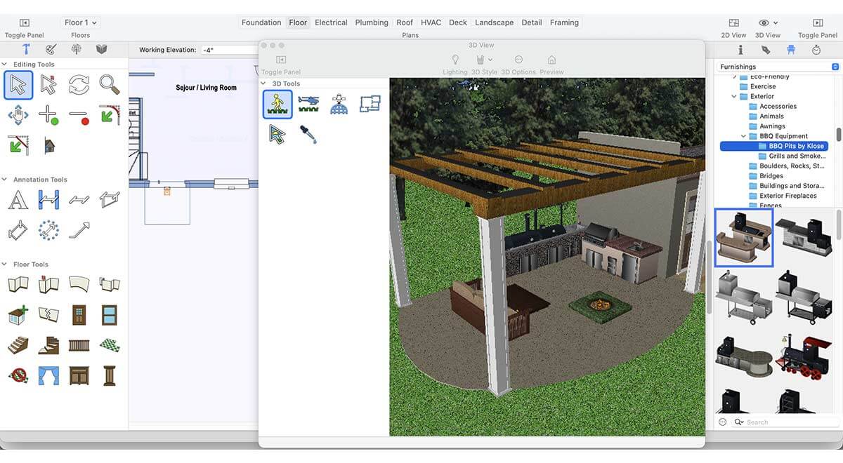 Similarly, the application includes a wide selection of exterior fireplaces that can elevate the atmosphere of your outdoor kitchen, making the space warmer, more inviting, and visually appealing.