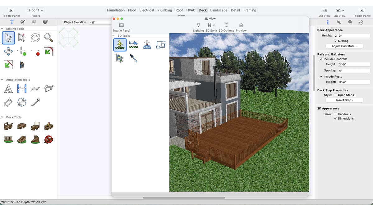 Our powerful deck-design tools make the process simple and enjoyable. Create stunning decks with or without railings, trace outlines instantly with the smart auto-design feature, and customize every detail with railing and step options.